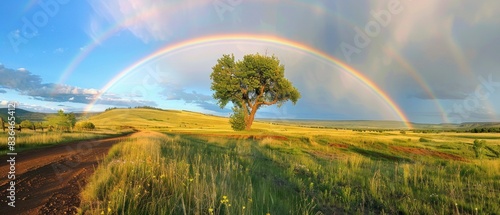 © 2D_Jungle, Obraz premium A rainbow arching gracefully over a tranquil landscape
