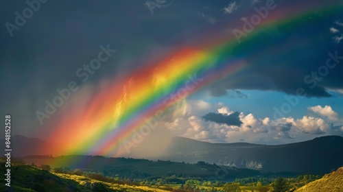 Obraz premium A rainbow emerges after a storm, arching across the sky as a symbol of hope...
