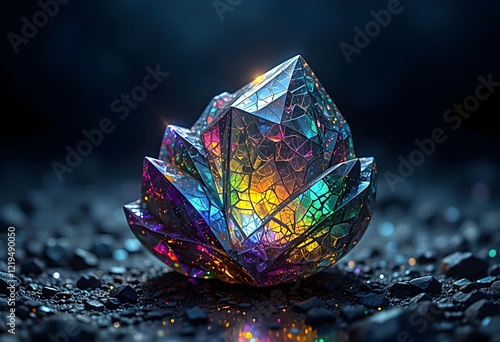 © CamClips, Fototapeta premium A rainbow obsidian crystal radiating colorful lights