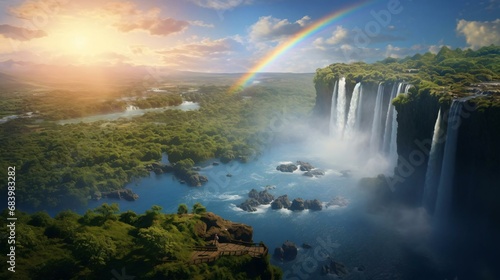 © KWY, Fototapeta premium a rainbow over a waterfall