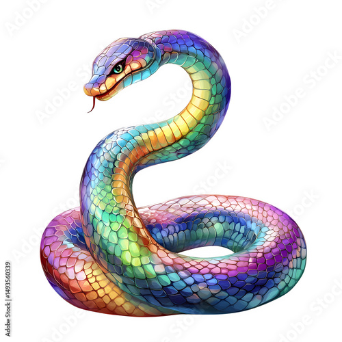 Fototapeta premium A rainbow serpent biting its tail, symbol of spiritual unity, isolated on...