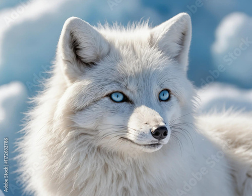 © Aboeyazied, Naklejka premium A rare Arctic fox, showcasing its thick, snowy white fur with subtle gray highlights