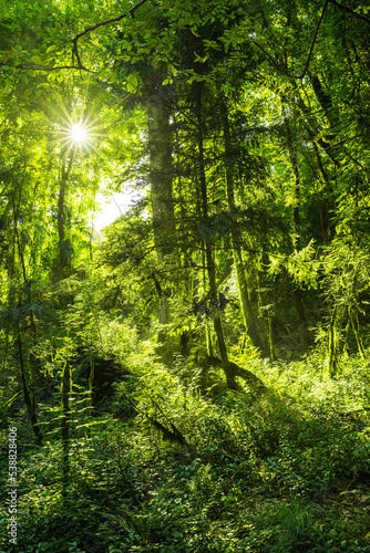 Fototapeta premium a ray of sunshine in a dense forest