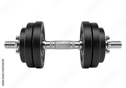 © faysal, Naklejka premium A realistic and detailed studio shot of a chrome dumbbell Isolated on transparent background