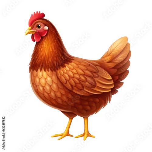 © Rabia, Fototapeta premium A realistic brown hen standing proudly isolated on transparent background