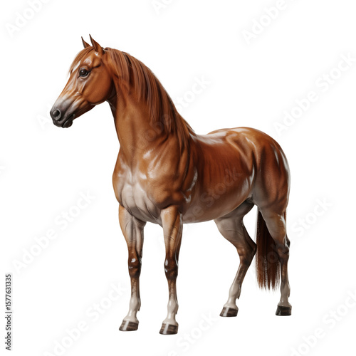 © HAFIZA, Obraz premium A realistic chestnut horse standing gracefully on transparent background