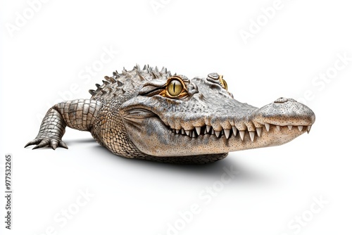© Chano_1_na, Naklejka premium A realistic crocodile with intricate details, showcasing its impressive features and texture in a clean white background.