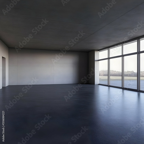 © Siasart, Obraz premium A Realistic 3D Empty Interior Room With Large Windows And Concrete