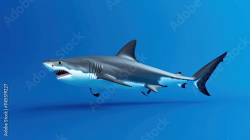 Obraz premium A realistic 3D rendering of a shark swimming in blue water.