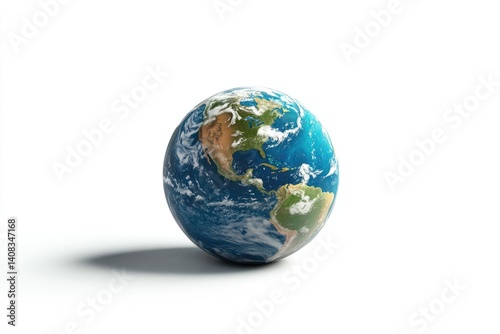 © Amal, Fototapeta premium A realistic 3D rendering of planet Earth, showing North and South America, oceans, and cloud formations.