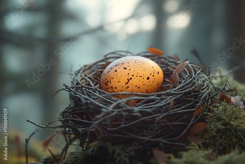 © AungThurein, Obraz premium A realistic depiction of a single eagle egg resting in a meticulously crafted nest