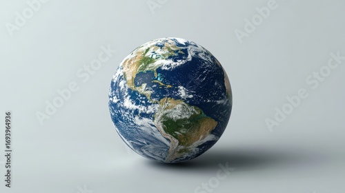 Fototapeta premium A realistic depiction of Earth showcasing continents, oceans, and clouds against a plain background.