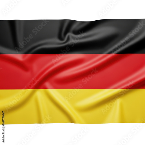Naklejka premium A realistic depiction of the german flag, featuring its black, red, and gold stripes with natural fabric folds. Ideal for national identity, sports, or international themes.