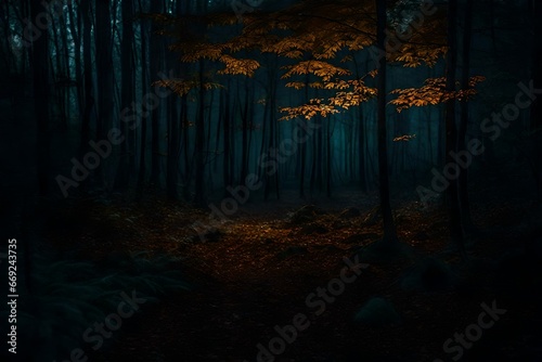 © Osama, Naklejka premium A realistic, eerie, and scary woodland at night