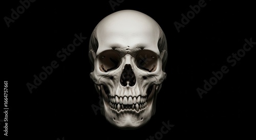 Fototapeta premium A realistic human skull on a black background, symbolizing death and mortality