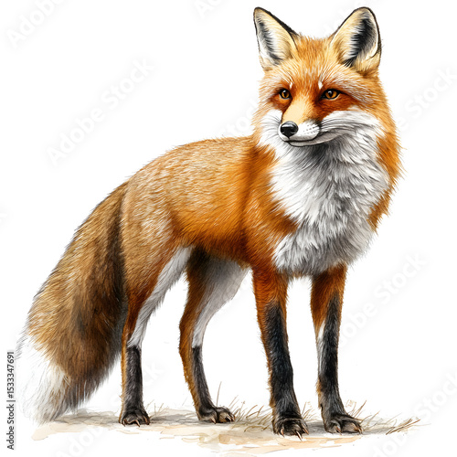 © Nilawan, Fototapeta premium A realistic illustration of a red fox