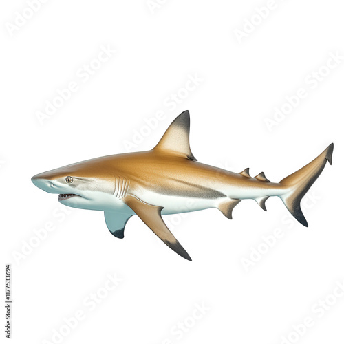 Fototapeta premium a realistic illustration of a shark. showcasing its streamlined body. fins. and distinctive coloration. emphasizing its aquatic nature the background is plain white. allowing the shark to stand out pr