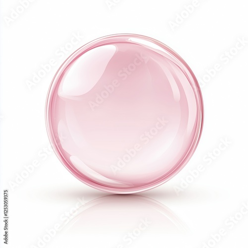 © Inner peace_2025, Obraz premium A realistic illustration of a translucent pink bubble, detailed with soft reflections and delicate highlights, appearing perfectly round and glossy, placed on a clean white background.