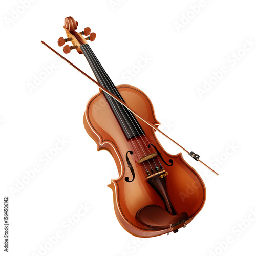 © aminebouka, Fototapeta premium A realistic illustration of an elegant violin with its bow