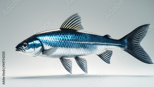 Fototapeta premium A realistic model of a silver-blue fish with detailed scales and fins placed...