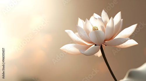 Fototapeta premium A realistic rendering of a blooming flower with delicate textures and soft lighting, creating a serene mood on a plain backdrop,No blurriness