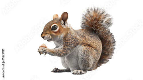 © Teerasak, Obraz premium A realistic rendering of a small, curious-looking squirrel holding an acorn, on a white background.