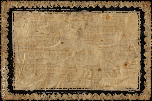 Obraz premium A rectangular frame with a textured beige center and a scalloped black and beige border design element