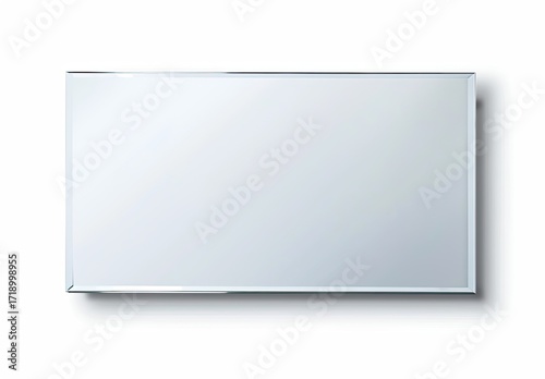© MARDJAN, Obraz premium A rectangular mirror with a slightly beveled edge casts a subtle shadow on a white background