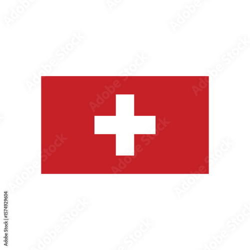 Obraz premium A rectangular swiss flag with a white cross centered on a red background in a simple vector image