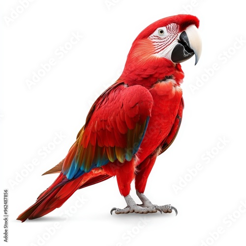 © TheosArtTavern, Obraz premium A red and blue parrot stands on a white background