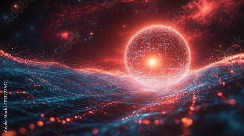 © CtrlN, Obraz premium A red and blue planet with a glowing orb in the center