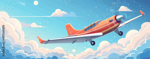 Fototapeta premium A red and white airplane is flying through the sky. The sky is blue with some...