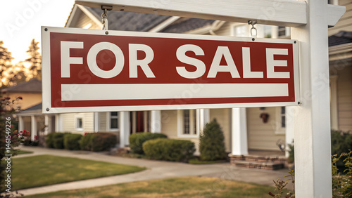 Obraz premium A red and white "For Sale or Rent" sign is prominently displayed. The sign is...