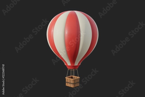 © darshika, Obraz premium A red and white striped hot air balloon with a wicker basket.