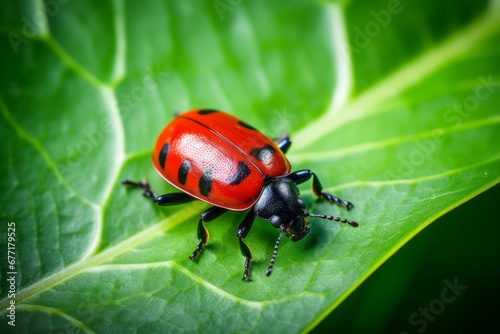 © Hitam Putih, Obraz premium A red beetle Crawling on a Leaf