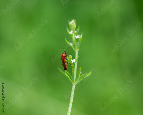 Fototapeta premium a red beetle on the green grass