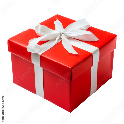 Obraz premium A red box with a white bow on top Isolated on transparent background, PNG