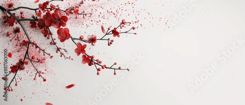 © Napat.T, Fototapeta premium A red branch with blossoms on it