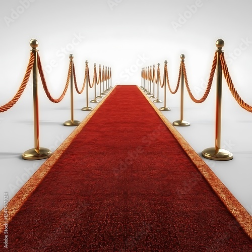 © Menggo, Obraz premium A Red Carpet Leads Between Gold Stanchions and Rope Barriers