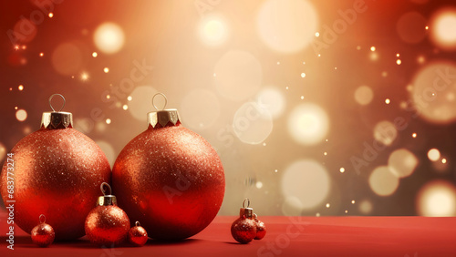 Fototapeta premium A red Christmas backdrop adorned with elegant globes, setting the perfect holiday atmosphere