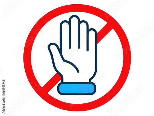 © Insight, Obraz premium A red circle with a diagonal line through it, featuring a simple outlined hand