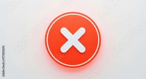 © IQ-Photography, Fototapeta premium A red circle with a white border and a white x in the center on a white background, close up view