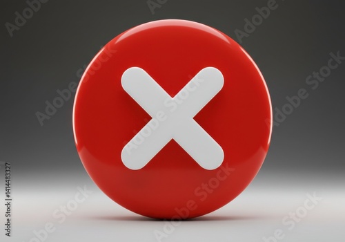 © Vooglo.com, Fototapeta premium A red circle with a white x in the middle against a gray background close up in a studio setting