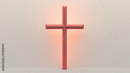 © cff999, Naklejka premium a red cross is lit up on a white wall