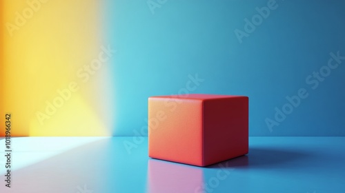 © Tyoma, Obraz premium A red cube is sitting on a blue surface