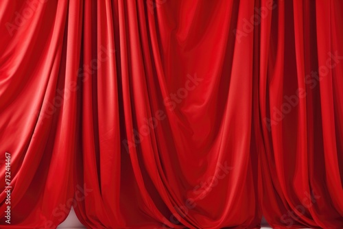 Fototapeta premium A red curtain hangs behind a white chair, creating an elegant and dramatic...
