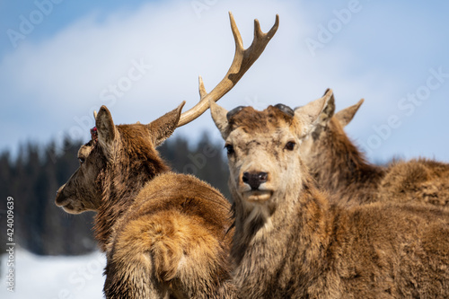 © DoreenB. Photography, Fototapeta premium a red deer is losing his antlers in the spring