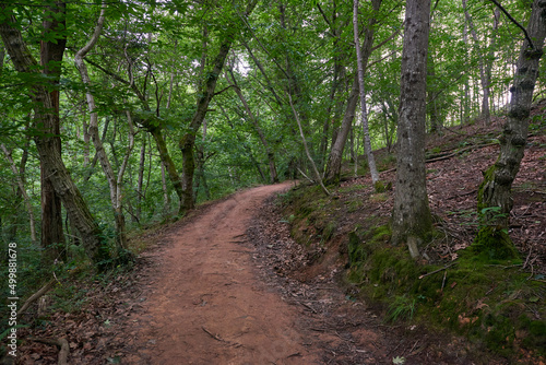 © JoseManuel, Obraz premium A red dirt road leading into the dense forest
