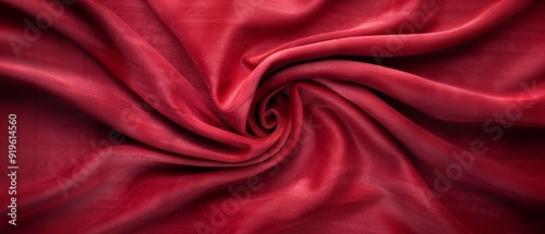 © Mikus, Obraz premium A red fabric's detailed view, showcasing a circular design at its center, situated at the image bottom