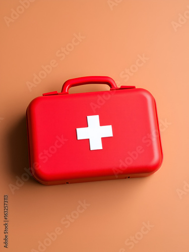 © Chad, Fototapeta premium a red first aid case on a brown background